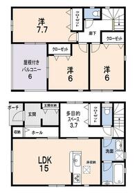 詳細を見る間取り3LDK〜4LDK+S(納戸)建物面積102.06m²~106.1m²土地面積土地:138.15m2~161.26m2 建物:102.06m2~106.10m2築年月-