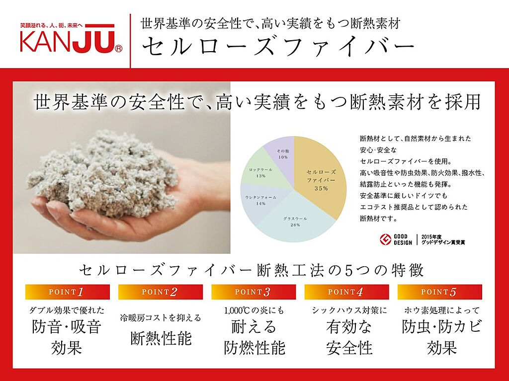 KANJUでは、全物件で徹底した地盤調査をおこない、軟弱地盤だった場合は、強固な地盤改良をおこないます。調査結果に基づいて適切に工事し、不同沈下などを起こさない地盤の品質をお約束。20年間の地盤保証を全戸で実施しています。