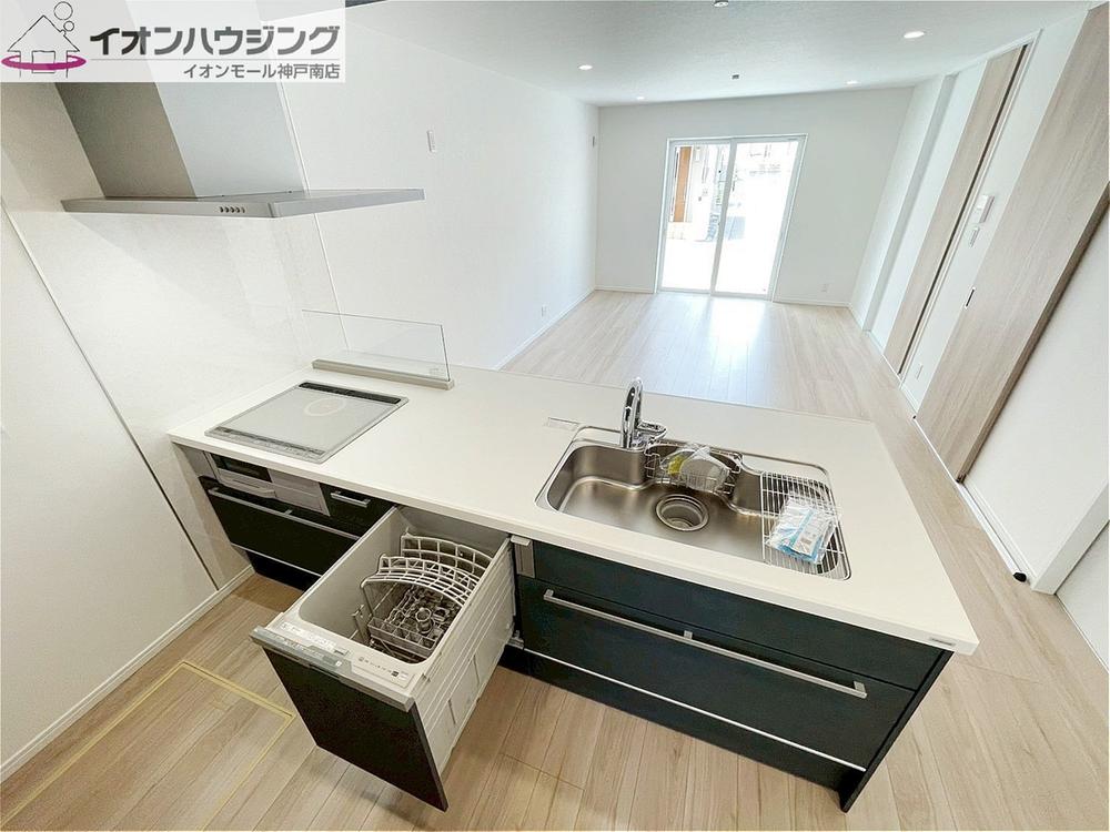 システムキッチンは対面式の広々カウンターキッチンです!おしゃれなデザインで広い調理スペースでは、ご家族皆さまでご飯の準備やお菓子作りなどを楽しんで頂けます♪キッチンから楽しい声が聞こえてきそうです♪