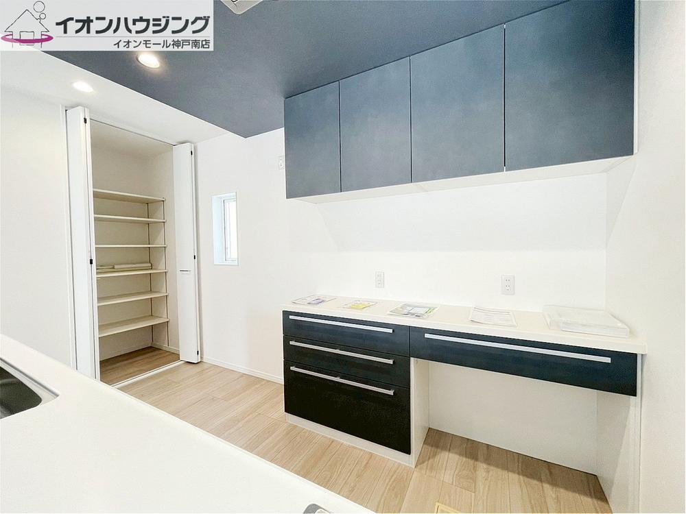 システムキッチンは対面式の広々カウンターキッチンです!おしゃれなデザインで広い調理スペースでは、ご家族皆さまでご飯の準備やお菓子作りなどを楽しんで頂けます♪キッチンから楽しい声が聞こえてきそうです♪