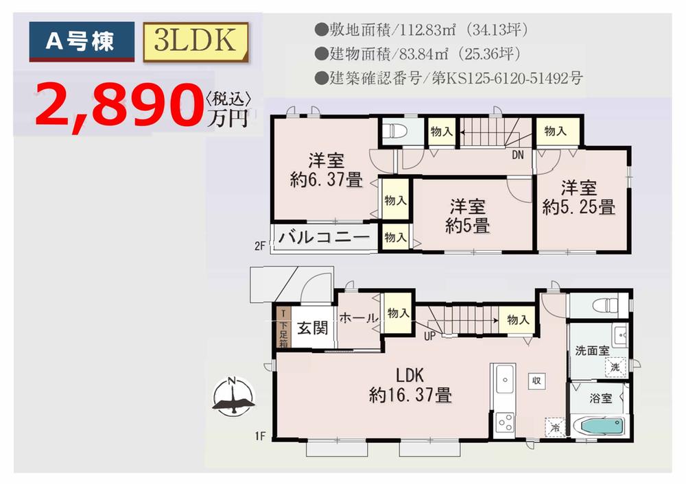 | 建物面積 | 83.84㎡~95.84㎡(25.36坪~28.99坪)(登記) | 土地面積 | 112.83㎡~128.76㎡(34.13坪~38.94坪)(登記) | ||