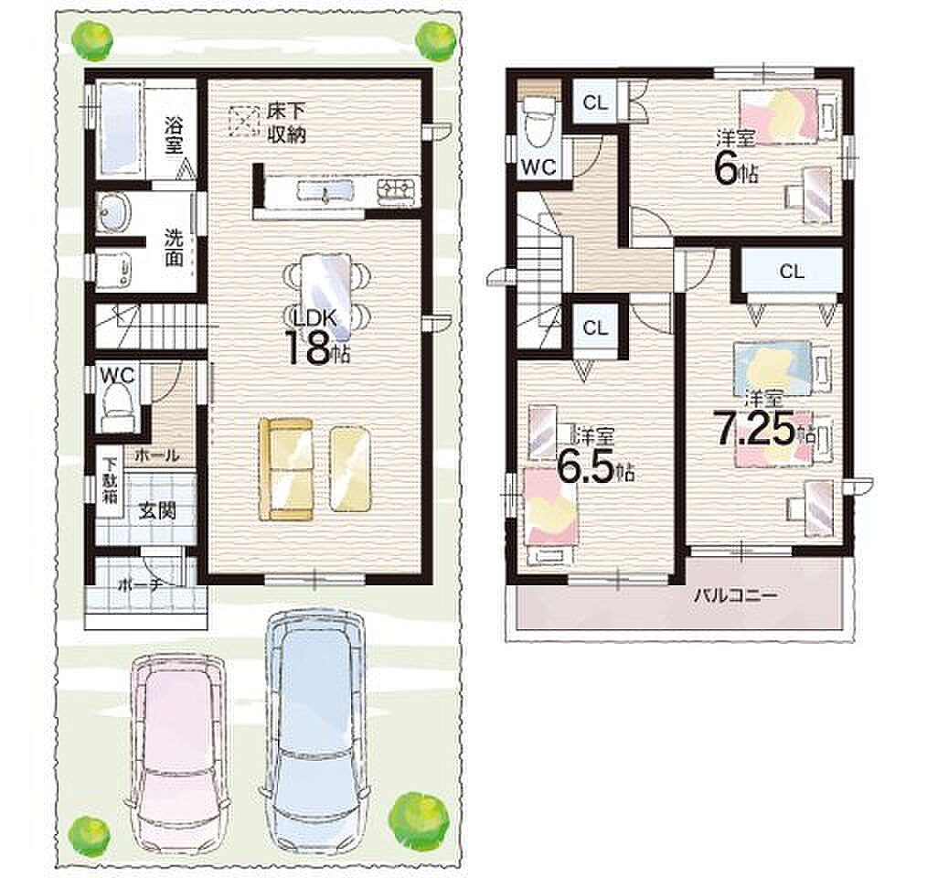 | 建物面積 | 87.35m2~95.84m2 | 土地面積 | 98.86m2~107.43m2 | ||