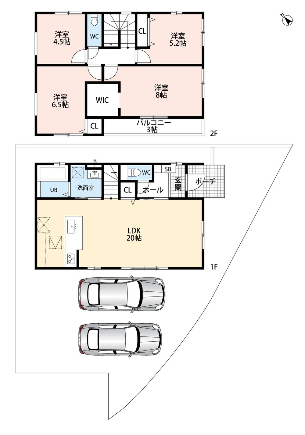 | 建物面積 | 101.01㎡・104.33㎡(30.55坪・31.55坪) | 土地面積 | 152.79㎡・153.27㎡(46.21坪・46.36坪) | ||