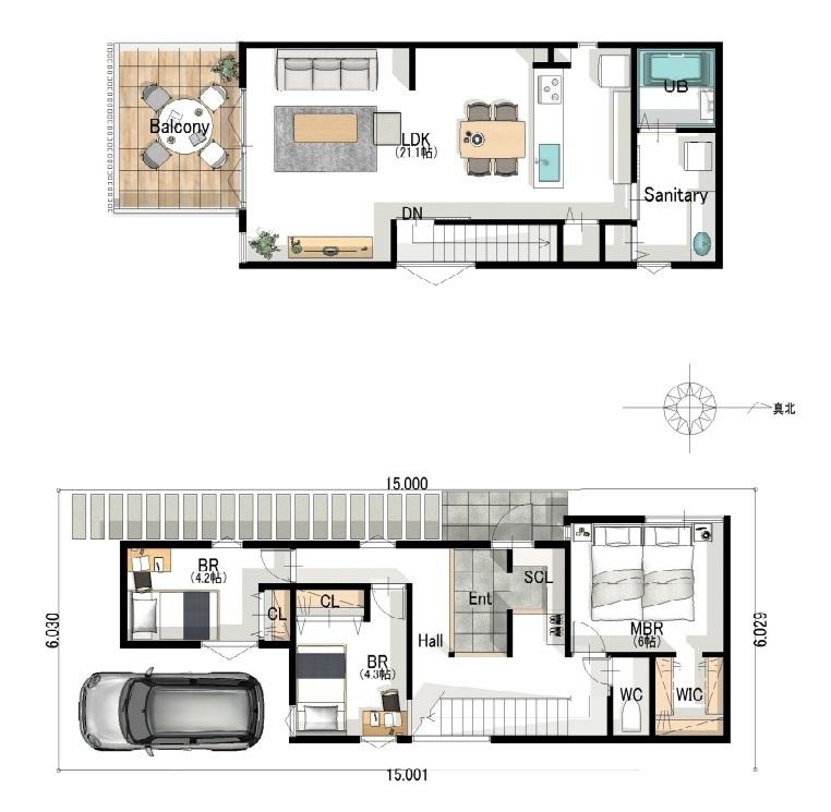 ※土地(建築条件なし)で「建物プラン例」が表記してある時、そのプラン例は特定の建築請負会社によるもので、当該建築請負会社以外で建てた場合、同様のものが同価格で建てられるとは限りません。また建築請負会社を特定するものではありません。