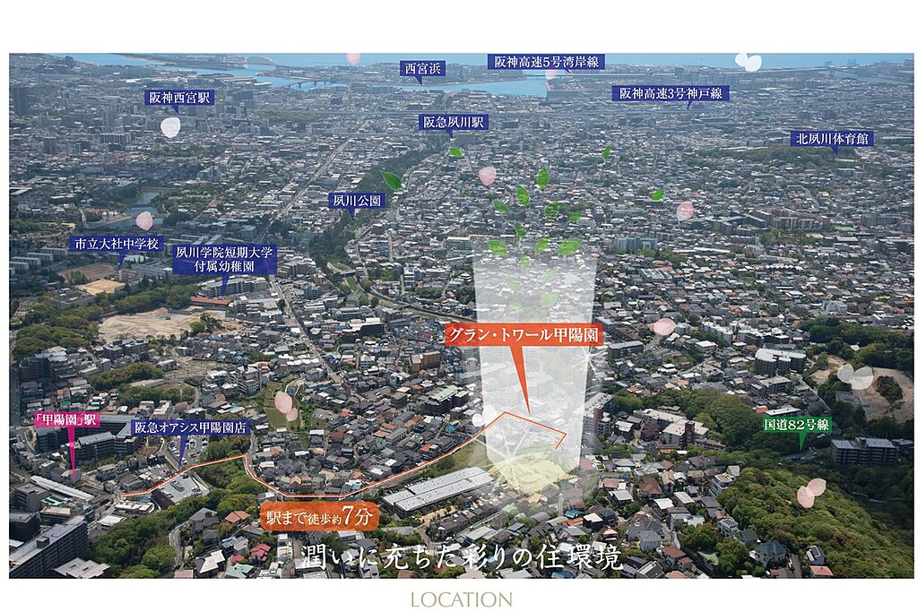 ■安心の暮らしを支える二つの保証体制 当社で建てている家は、いつまでも快適で安心して暮らせるよう、 すべての家に10年間の瑕疵担保責任保険「JIOわが家の保険」を導入しています。 構造耐力上主要な部分・雨水の浸入を防止する部分に発生した隠れた瑕疵に対し、10年間補償します。 地盤の品質保証についてはJHS(ジャパンホームシールド株式会社)の地盤サポートシステムにより、 地盤を調査し必要に応じて地盤改良を行っております。 お渡し日から20年間、建物が不同沈下しない地盤品質を提供します。 西宮七園の一つ「甲陽園」高級住宅街に全24邸の文化・伝統の街。 第一種低層住居専用地域×東六甲山地区風致地区で、法令によって守られた美しい街並みです。 阪急甲陽線「甲陽園」駅まで徒歩約7分。大阪梅田・神戸三宮の2つのターミナルへ快適アクセス。暮らしを豊かにする充実の生活施設と質の高い教育施設が整う、子育ても安心の文教エリア。 【限定1邸特別分譲中】コンセプトハウスからの抜群の眺望・夜景を、ぜひ現地で体感してください! | ||||