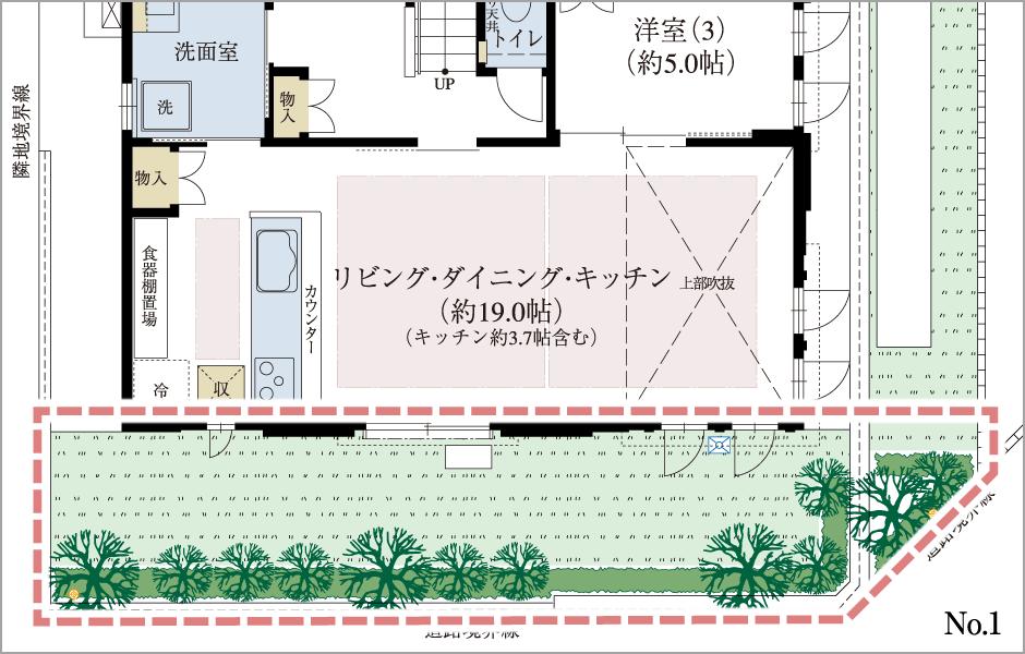 ※建築条件土地の情報内に掲載されている、建物プラン例は、土地購入者の設計プランの参考の一例であって、プランの採用可否は任意です。
