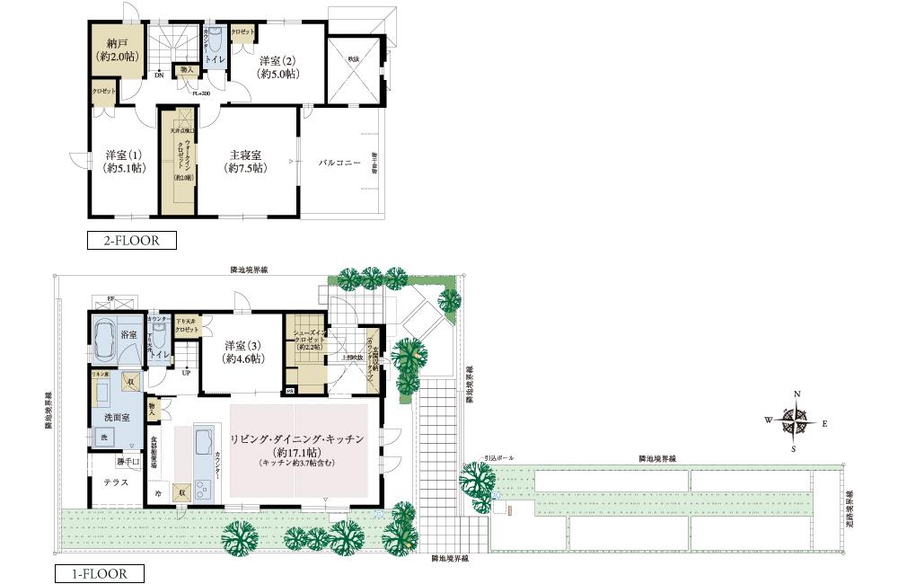 | 建物面積 | 102.67㎡~116.75㎡(31.05坪~35.31坪) | 土地面積 | 152.36㎡~163.84㎡(46.08坪~49.56坪) | ||