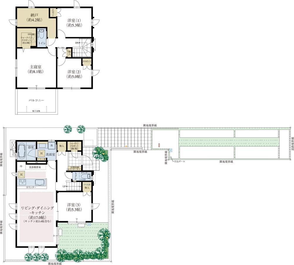 ※土地(建築条件なし)で「建物プラン例」が表記してある時、そのプラン例は特定の建築請負会社によるもので、当該建築請負会社以外で建てた場合、同様のものが同価格で建てられるとは限りません。また建築請負会社を特定するものではありません。