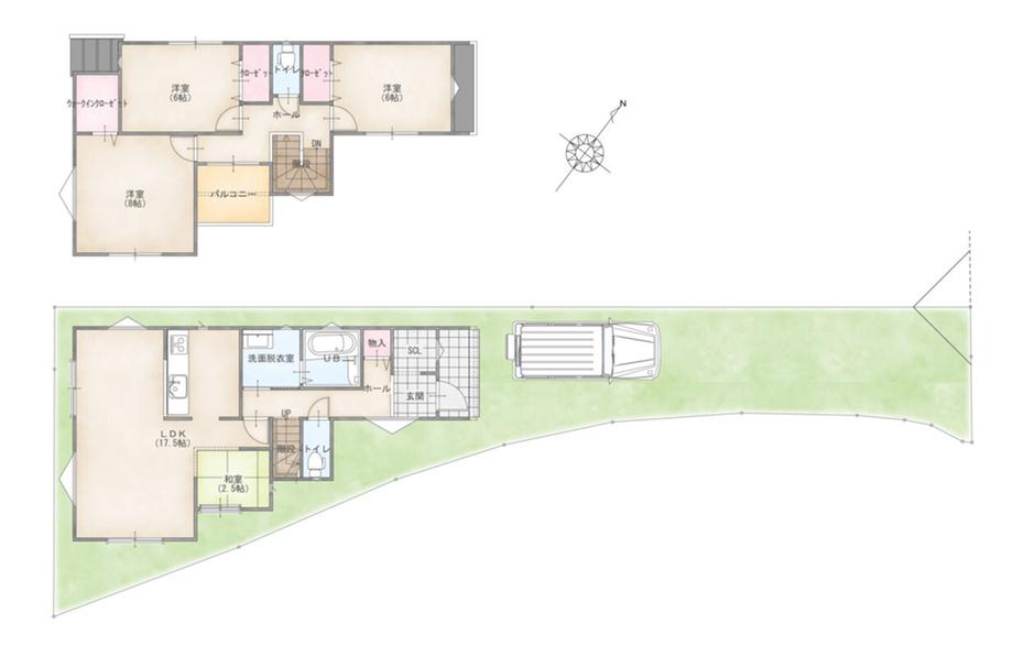 ※土地(建築条件なし)で「建物プラン例」が表記してある時、そのプラン例は特定の建築請負会社によるもので、当該建築請負会社以外で建てた場合、同様のものが同価格で建てられるとは限りません。また建築請負会社を特定するものではありません。