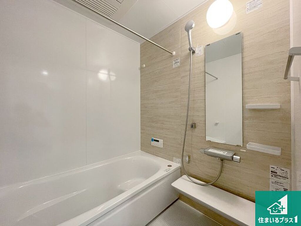 足をゆったり伸ばして寛げる浴槽です。窓が設けられていますので差し込む光が明るく穏やかな雰囲気にしてくれます♪浴室乾燥機も設置しているので、雨の日の洗濯物も安心です♪