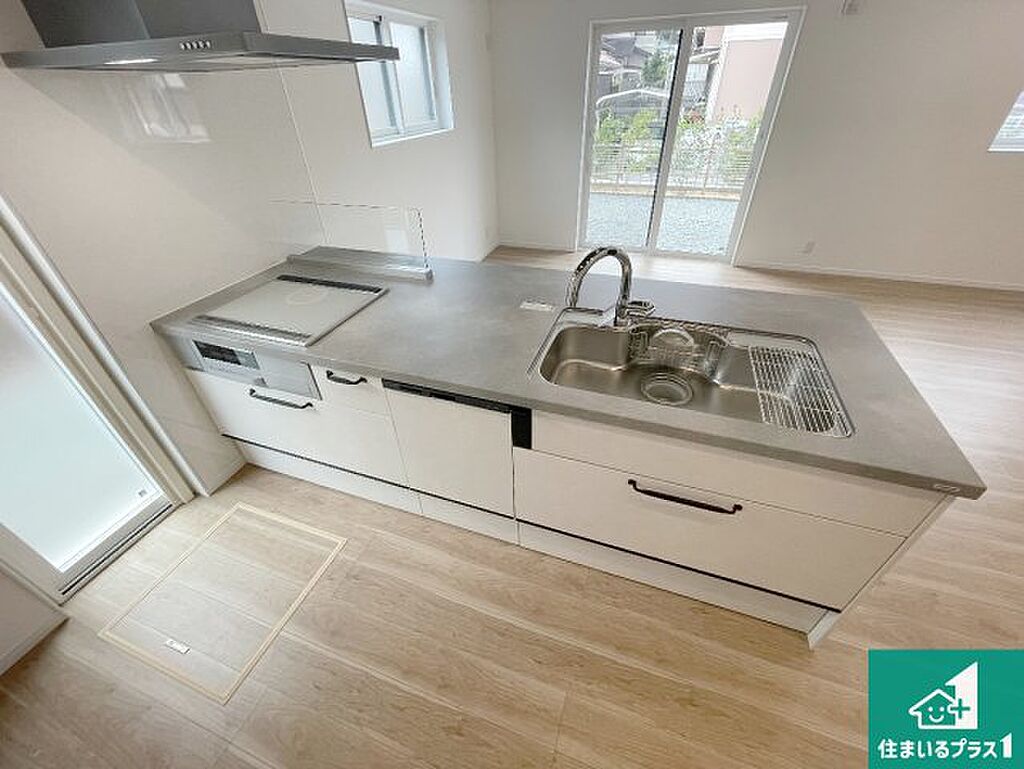 日当たり良好の明るいリビングで朝の目覚めもスッキリできそう!対面キッチンでご家族のコミュニケーションも自然と増える設計!小さなお子様が遊ぶスペースを作っても広々とくつろげるLDK!