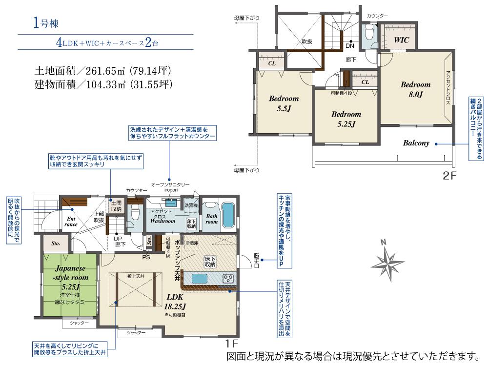 土地面積土地:261.65m2(約79.14坪) 建物:104.33m2(約31.55坪)