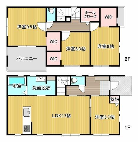 | 設備 | 収納スペース・都市ガス・フローリング・浴室乾燥機・Wクロゼット・照明器具・シャンプードレッサー・ウォシュレット・システムキッチン・カウンターキッチン・庭・トイレ2ヶ所・床下収納・浄水器・複層ガラス・上水道・下水道 | ||||