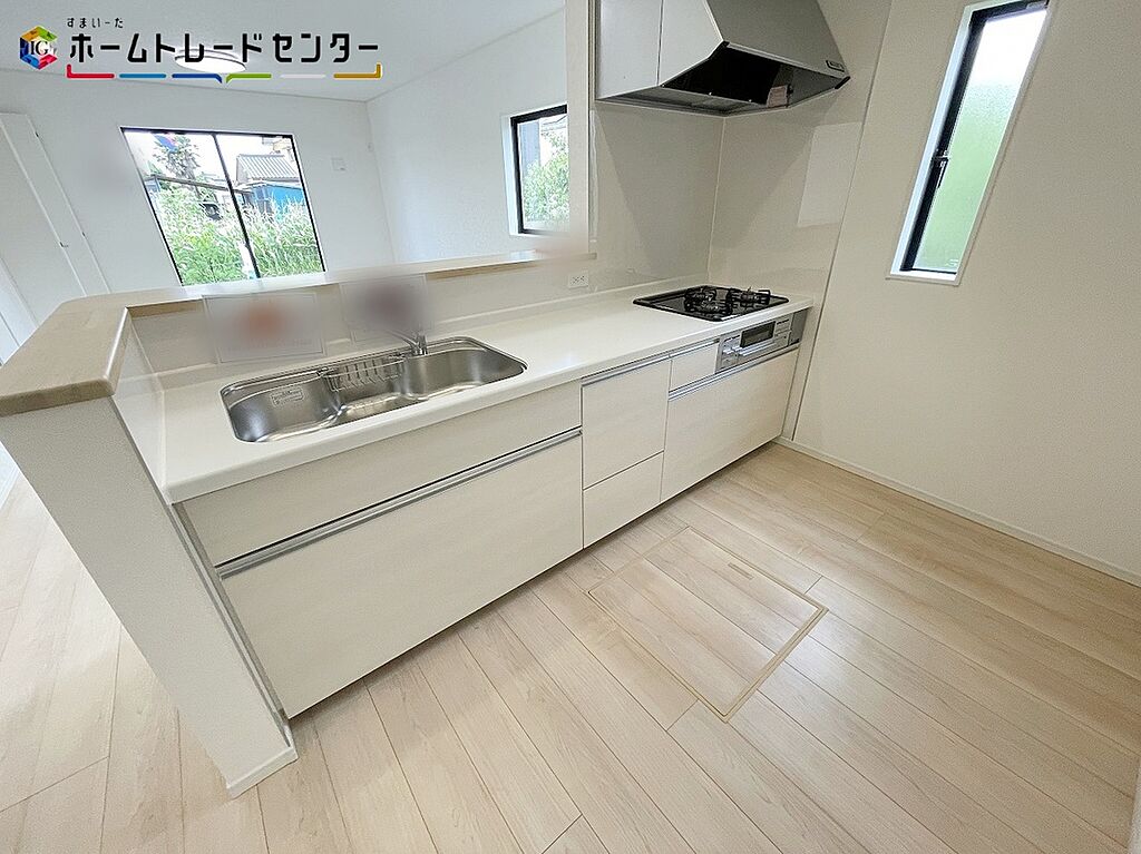 開放感のある明るいリビング&キッチンです!対面式キッチンからは、リビングにいるご家族の様子が一目で分かります。小さいお子様がいても安心です。