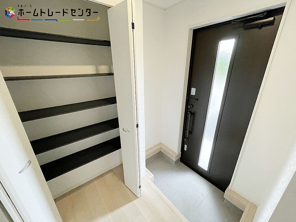 訪れる人を優しく迎える、スタイリッシュな玄関。開放感のある玄関ホール。温もり感じるフローリング仕様ですので、ご家族やお客様を温かく迎えてくれます。