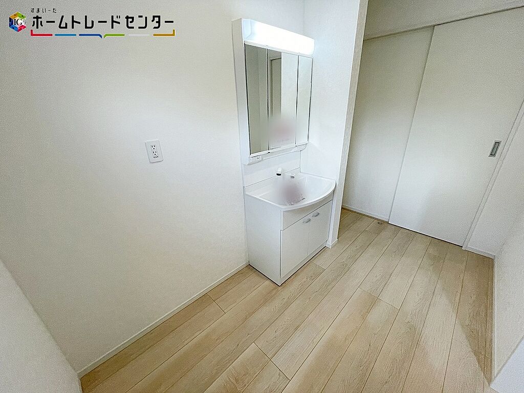 サニタリースペースには窓が備えられております。毎朝の身支度も、陽の光差し込む明るい空間で、快適にお使い頂けそうです。女性にはうれしい3面鏡化粧台。鏡の裏が収納になっている機能的なタイプです。