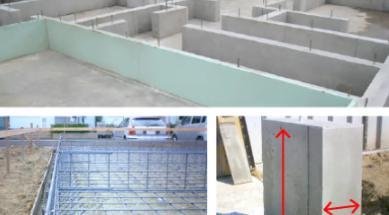 床面と立ち上がり部分が一体となる強固なベタ基礎工法。幅は150mm、高さは400mm。鉄筋はあらかじめ工場でつくることで現場加工による精度のバラツキもなくしています。