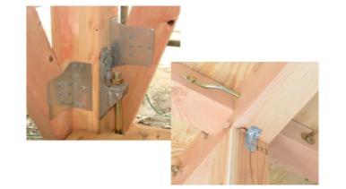 基礎と柱を強固に連結して建物の強度を高めます。地震が発生した時などには柱の引き抜き防止の効果もあります。羽子板金物柱と横材の連結に使用します。地震や台風時などに梁などが外れてしまうことを防ぐ重要な金物です