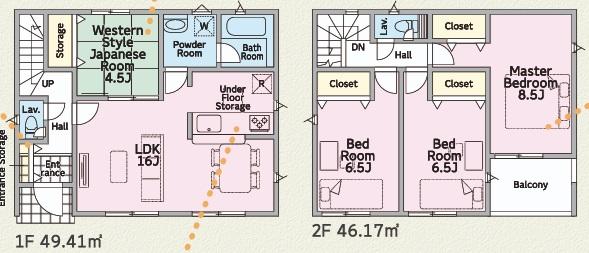 ※土地(建築条件なし)で「建物プラン例」が表記してある時、そのプラン例は特定の建築請負会社によるもので、当該建築請負会社以外で建てた場合、同様のものが同価格で建てられるとは限りません。また建築請負会社を特定するものではありません。