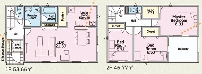 建物面積 | 95.58㎡・100.43㎡ | 土地面積 | 161.45㎡・262.3㎡ | ||