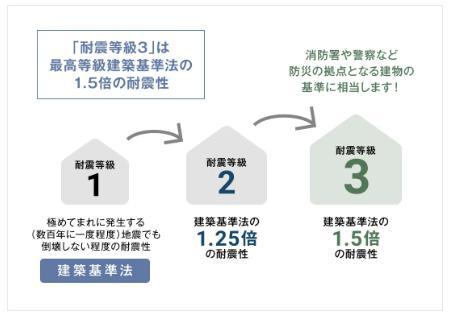 新築の住宅において、基礎着工前に地盤調査会社による地盤調査を行っています。調査結果を元に、必要に応じた、地盤補強等を実施し、不同沈下しないよう対策をとっております。万が一不同沈下による損害があった場合でも地盤調査会社による保証があるため安心です。