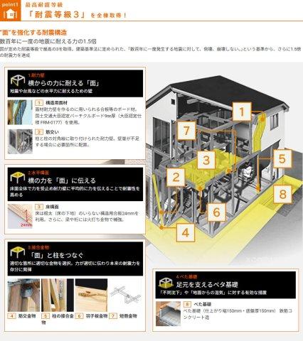 柱や梁の強度で揺れに耐える耐震構造に加え揺れを吸収する制震装置TOEI Safety Damperを標準搭載。繰り返しの地震にも強く長期にわたり高い制震性能を発揮し安心の住まいを実現します。