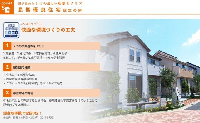 | 設備 | 長期優良住宅認定通知書 / 設計住宅性能評価書 / 建設住宅性能評価書(新築時) / フラット35Sに対応 / 駐車2台可 / 土地50坪以上 / LDK18畳以上 / システムキッチン / 浴室乾燥機 / 陽当り良好 / 全居室収納 / 閑静な住宅地 / 前道6m以上 / 和室 / シャワー付洗面化粧台 / 対面式キッチン / ワイドバルコニー / トイレ2ヶ所 / 浴室1坪以上 / 2階建 / 東南向き / 南面バルコニー / 複層ガラス / 温水洗浄便座 / 床下収納 / TVモニタ付インターホン / 通風良好 / 都市ガス / 食器洗乾燥機 / 浄水器 | ||||