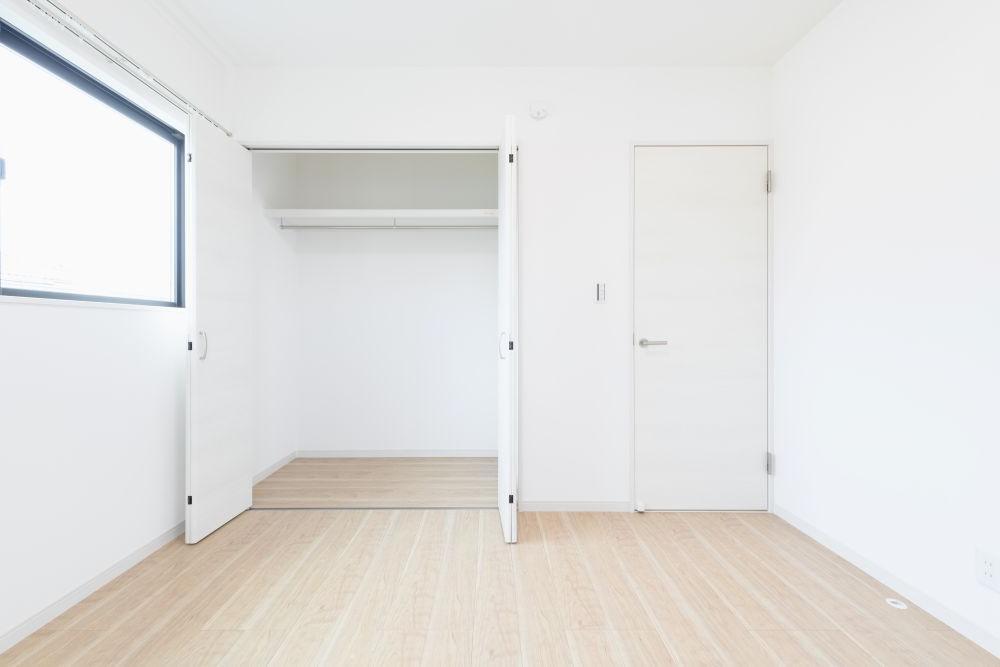 【施工例】洋室にはクローゼットを設け、衣類を掛けて収納できるハンガーパイプ付き。普段使いの服やバッグもすっきり整理できます。お部屋の広さを保ちながら、片づけがしやすい設計です。