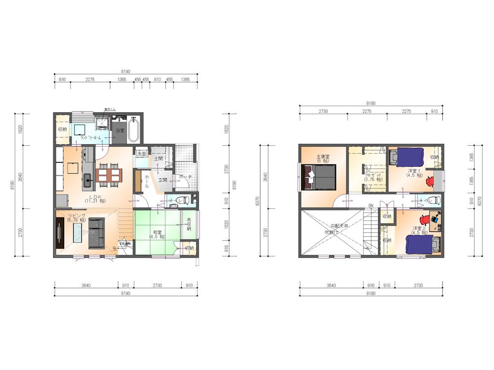 | 物件名 | 【二階建て】吹抜け×勾配天井で広見えLDKの家‐30.18坪4LDK | ||||