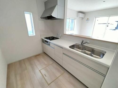 | 設備 | 収納スペース・プロパンガス・浴室乾燥機・シャンプードレッサー・ウォシュレット・システムキッチン・モニタ付インターホン・トイレ2ヶ所・床下収納・ルーフバルコニー・複層ガラス・上水道・下水道 | ||||