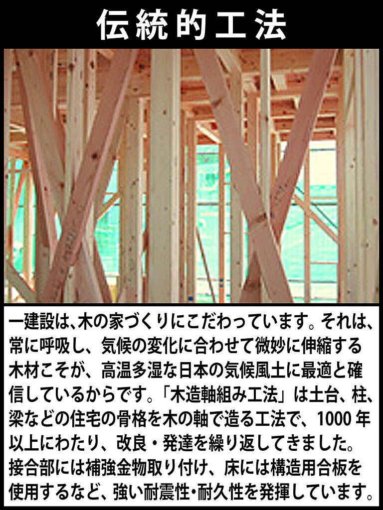 一建設は、木の家づくりにこだわっています。それは、常に呼吸し、気候の変化に合わせて微妙に伸縮する木材こそが、高温多湿な日本の気候風土に最適と確信しているからです。