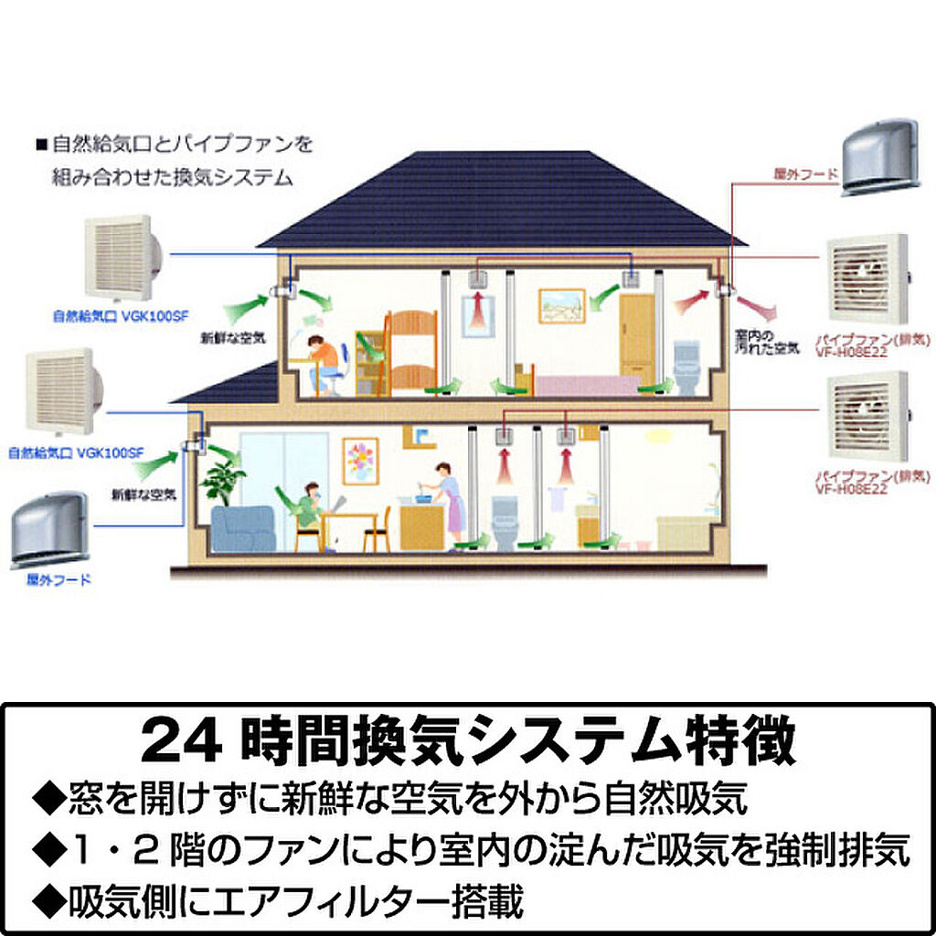 24時間換気システムを採用窓を開けずに新鮮な空気を外から自然吸気。