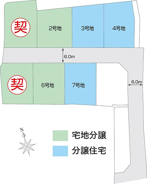 | 地目 | 田(造成完了後、宅地にて登記予定) | 道路付け | 道路幅:6m、アスファルト舗装 | ||