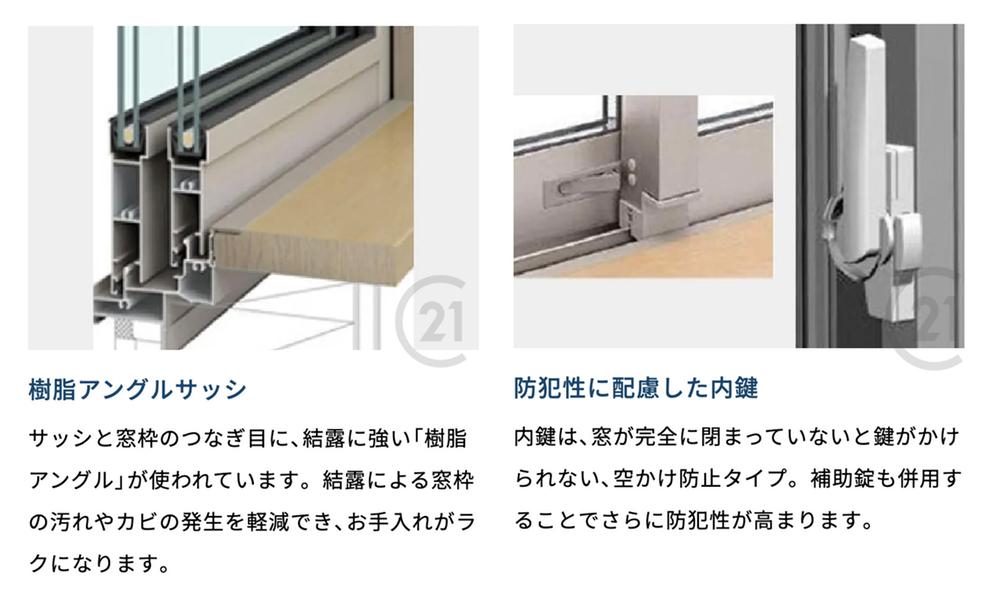 断熱性能の高いLow-Eペアガラスは、結露による窓枠の汚れやカビの発生を軽減します!内鍵は、窓が閉まっていないと鍵がかけられない、空かけ防止タイプ。補助錠も併用して防犯性が高められます♪