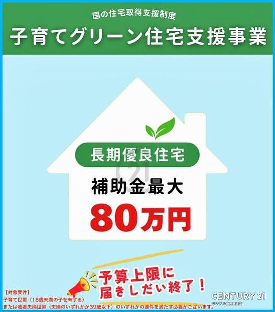 子育てグリーン住宅支援事業は長期優良住宅のため、補助金80万円の対象住宅になります!本補助金につきましては、予算が上限に達しだい終了となりますのでご了承ください。