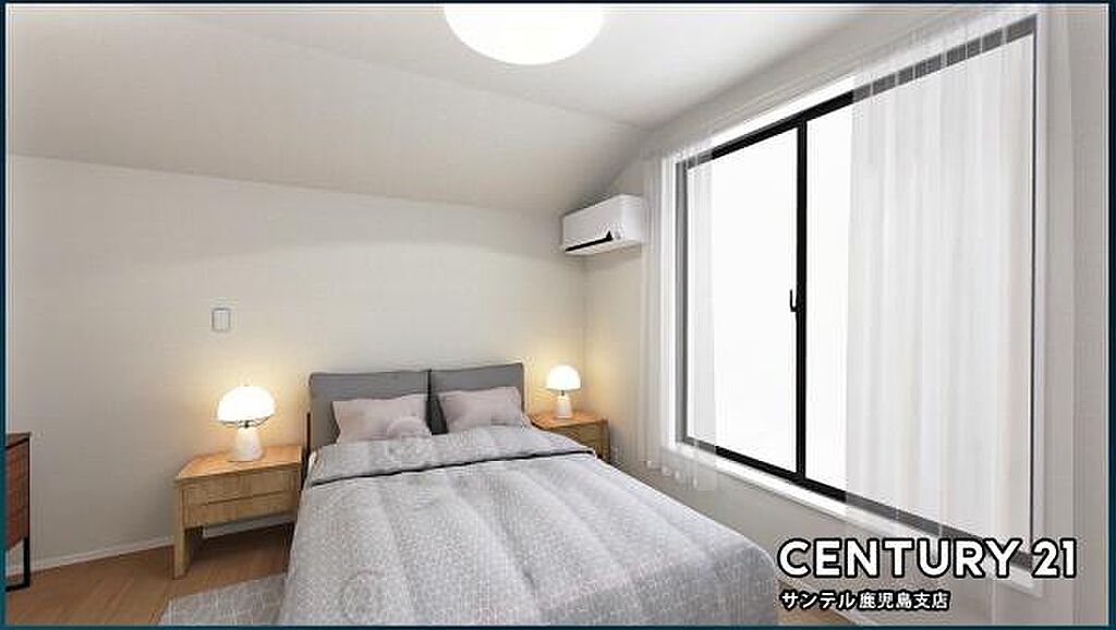 洋室6.6帖の同仕様CGモデル♪バルコニーとつながる洋室となっており、しっかり日が差し込みますので気持ちの良い目覚めができる素敵な洋室になります♪※家具、家電、インテリアはCGによるイメージです。