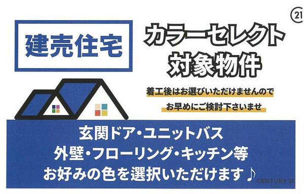 基礎着工前であれば、カラーセレクトが可能です♪外壁、フローリング、キッチン、ユニットバス、玄関ドア等のお好きなカラーをお選び出来ます♪カラーセレクトが可能かは、ご担当者へ確認をお願いいたします。