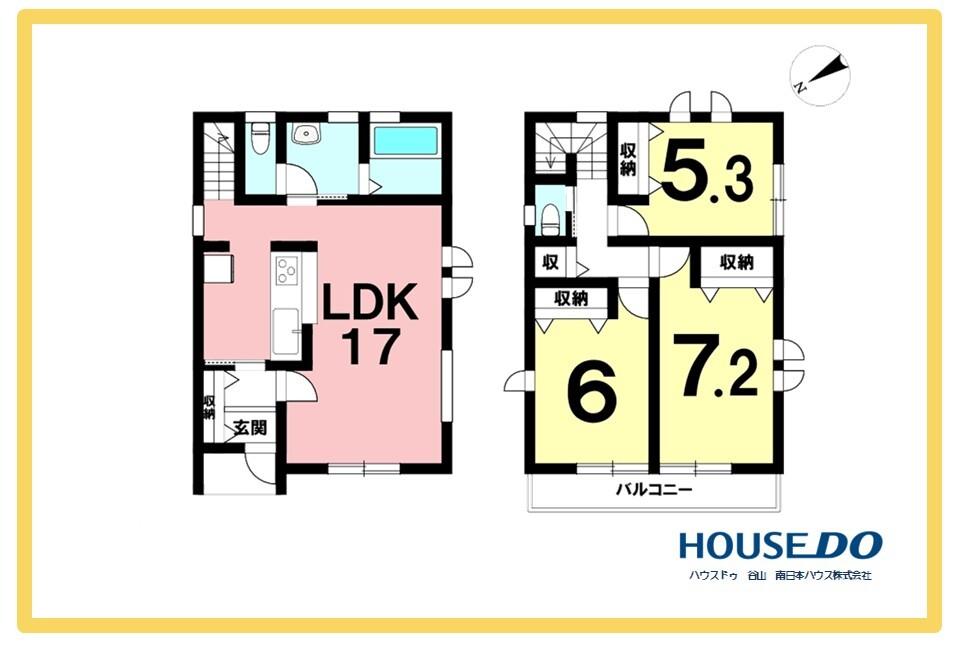 | 設備 | 駐車2台可 / 即引渡可 / システムキッチン / 浴室乾燥機 / 陽当り良好 / 全居室収納 / LDK15畳以上 / シャワー付洗面化粧台 / 対面式キッチン / トイレ2ヶ所 / 浴室1坪以上 / 2階建 / 南面バルコニー / 複層ガラス / オートバス / 温水洗浄便座 / 都市ガス / 周辺交通量少なめ | ||||