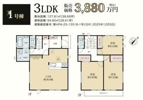 土地面積土地:147.44m2(約44.60坪) 建物:109.03m2(約32.98坪)