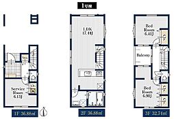 土地面積土地:52.81m2〜56.65m2 建物:106.50m2〜116.74m2
