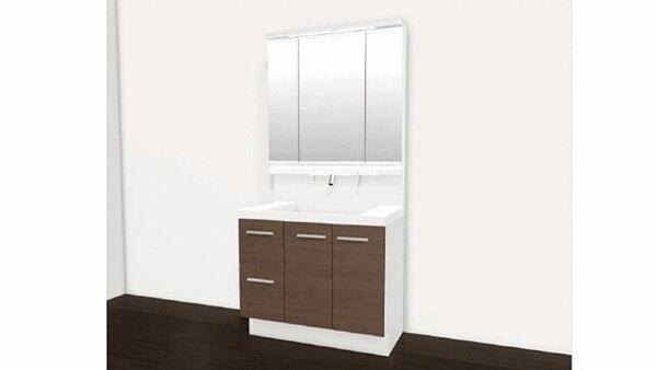 見た目の美しさだけではなく、機能性も追求した使い勝手の良い鏡裏収納付3面鏡型の独立洗面化粧台。広めで使いやすい、お手入れが楽なデザインのカウンターに収納豊富なキャビネットとでいつも清潔に保てます。