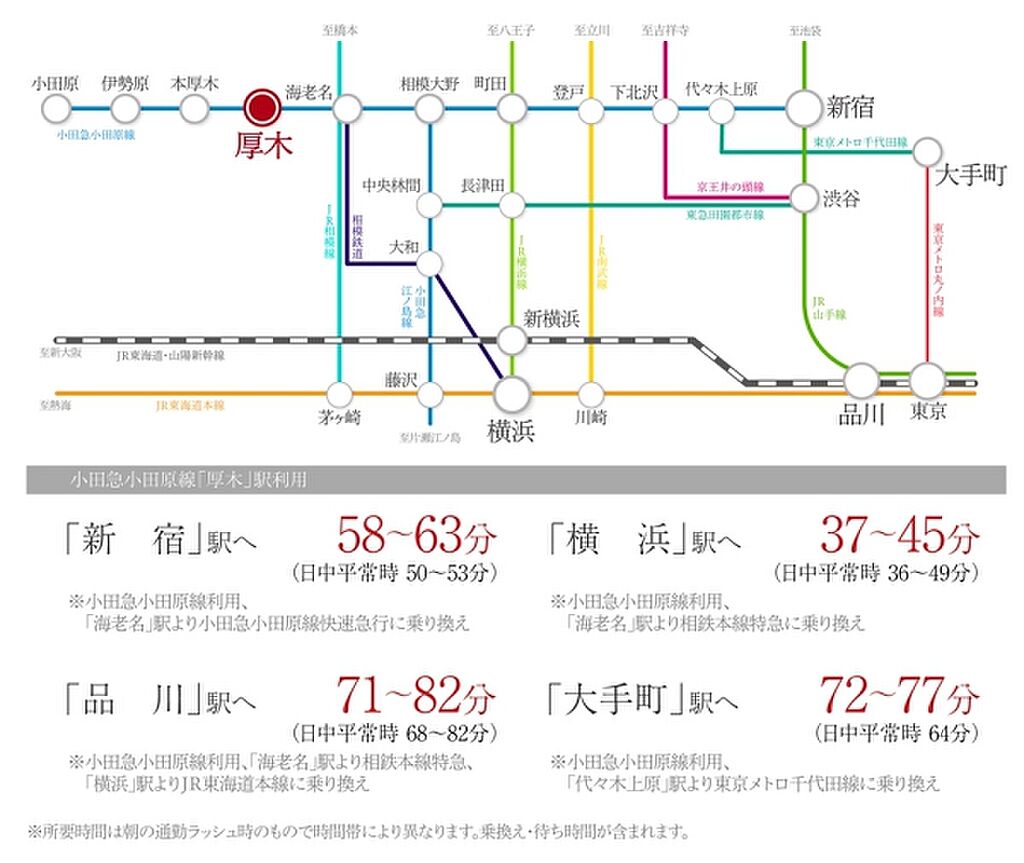 小田急小田原線「厚木」駅 徒歩6分~6分 小田急小田原線「海老名」駅 徒歩25分~25分 相鉄本線「海老名」駅 徒歩25分~25分 | ||||
