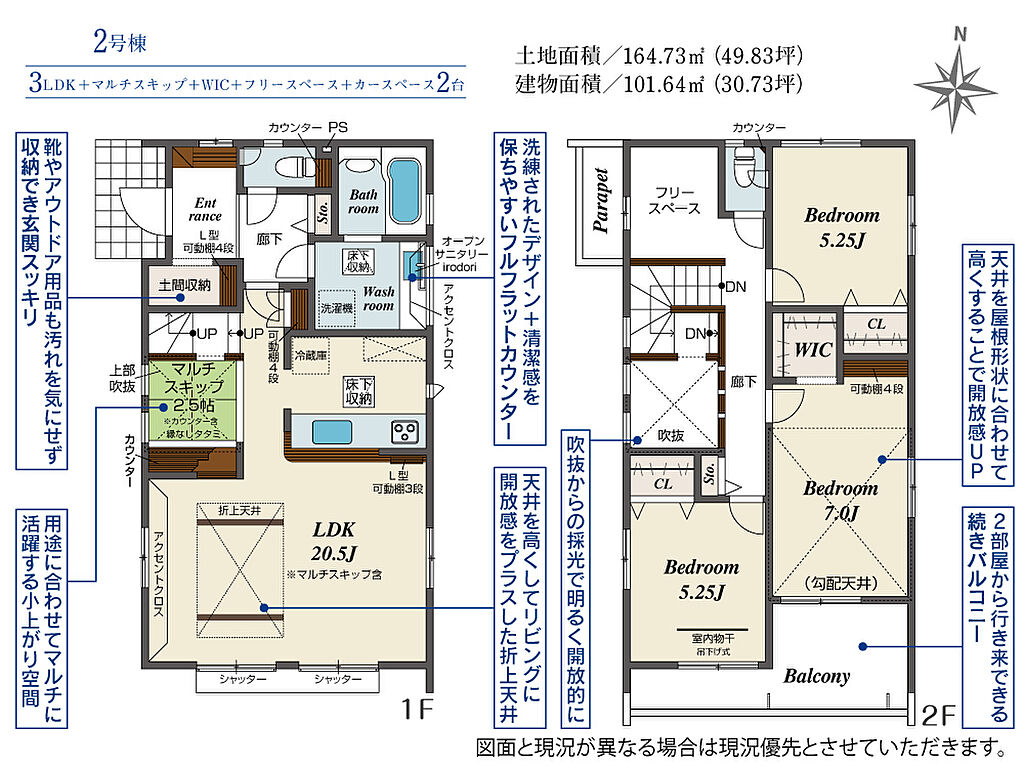 | 建物面積 | 100.75m2(約30.47坪)~101.64m2(約30.74坪) | 土地面積 | 164.73m2(約49.83坪)~173.57m2(約52.50坪) | ||