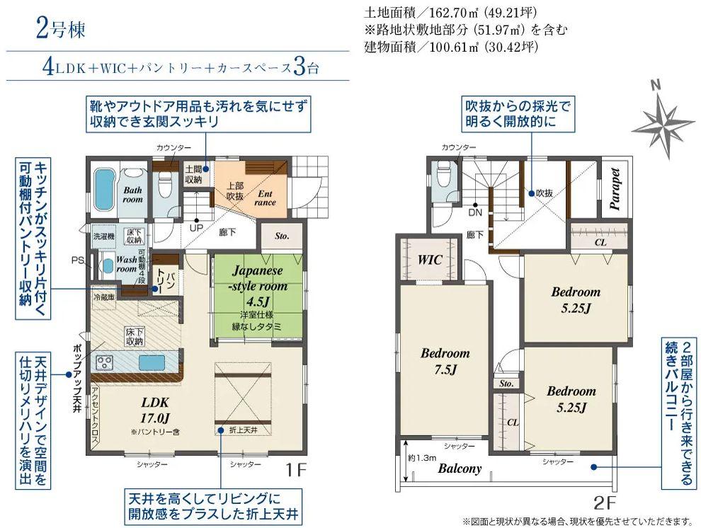| 建物面積 | 100.61㎡(30.43坪) | 土地面積 | 162.7㎡(49.21坪)(登記) | ||