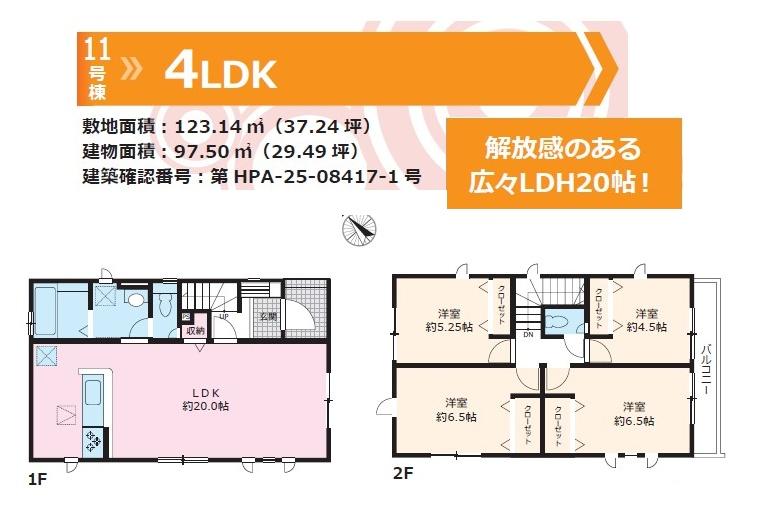 | 建物面積 | 92.32㎡~98.54㎡(27.92坪~29.80坪) | 土地面積 | 120.5㎡~138.29㎡(36.45坪~41.83坪) | ||