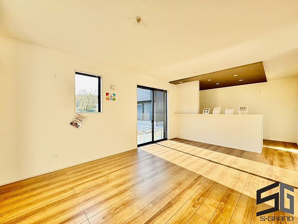 光があふれる開放的なリビングと、家事を効率良くこなせる動線を備えたマイホーム。シンプルで上質なデザインが家族の毎日を心地よく彩り、快適な暮らしを叶える理想の住まいです。