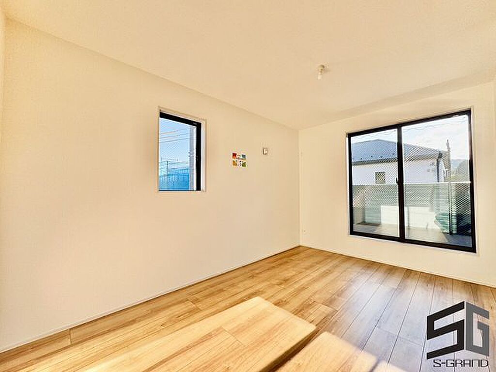 明るい陽射しが差し込む洋室は、くつろぎや趣味の時間に最適な空間。シンプルで上質なデザインが、日々の暮らしに心地よい落ち着きをもたらすマイホームの一部です。