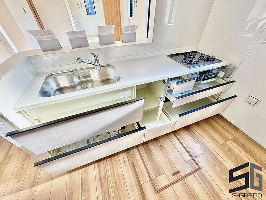 広々としたシンクは、調理や洗い物をスムーズにこなせるキッチンの中心。お手入れしやすく清潔を保ちやすい設計が、毎日の家事を快適にサポートするマイホームの魅力です。