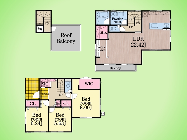 詳細を見る間取り3LDK建物面積73.7m²~84.2m²土地面積土地:69.50m2〜99.03m2(路地状部分:2号棟 約34m2、3号棟 約32m2含む) 建物:73.70m2〜84.20m2築年月-