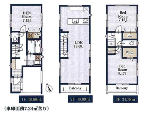 詳細を見る間取り3LDK+S(納戸)建物面積109.22m²~109.29m²土地面積土地:60.39m2〜61.41m2 建物:109.22m2〜109.29m2築年月-